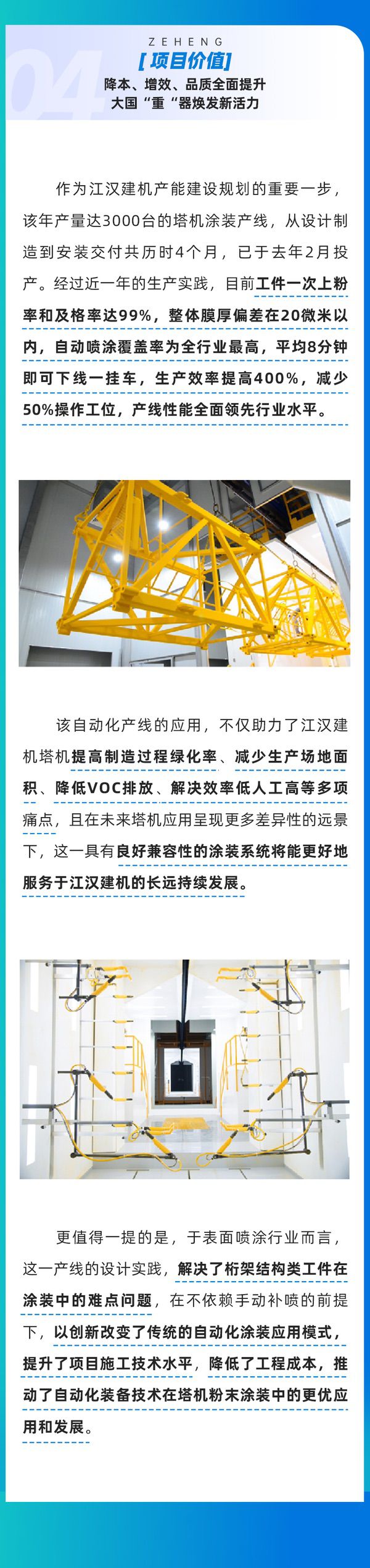 澤亨案例|江漢建機(jī)塔機(jī)自(zì)動化(huà)噴塗β&線,增效400%,創應用(yòng)領域紀錄!